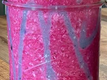 BASE: Dragonfruit, frozen banana, pineapple puree, almond milk